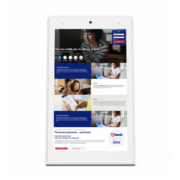 Mit seinem vertikalen Bildschirmdesign und seiner starken Android-basierten Architektur optimiert dieser Tablet die Wandhängerinstallation, um Platz zu sparen. Er unterstützt eine PoE- oder DST-Eingabe und ist mit einem RJ45 Ethernet-Port ausgestattet.