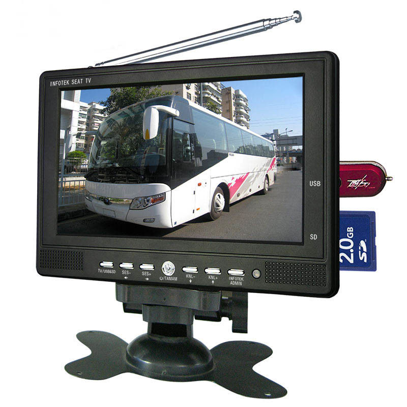 Die Rückansicht zeigt eine stabile Desktop-ähnliche Montagelösung und eine ausgewogene Bildschirmgröße, die klare Sicht bietet, ohne übermäßig viel Platz zu beanspruchen. Mit Unterstützung für externe Speicherung und einfachen physischen Bedienelementen ist dieser Monitor in täglichen Fahrsituationen einfach zu bedienen. Seine tragbare Struktur und die breite Spannungskompatibilität machen ihn für Autos, LKWs, Wohnmobile, Busse und Anhänger geeignet und bieten eine praktische Display-Lösung für Sicherheit, Überwachung und Unterhaltung im Fahrzeug in verschiedenen Anwendungsfällen.