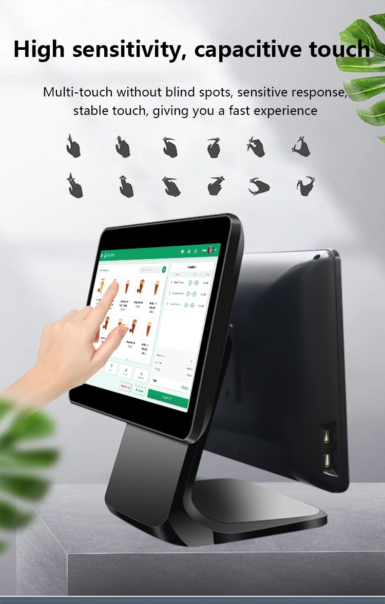 Diese POS-Maschine verfügt über eine10-Punkte-kapazitiver Touchscreen, ermöglicht eine präzise, mehrfach berührbare Eingabe, wie bei einem Smartphone oder Tablet. Es unterstützt reibungslose Pinch-to-Zoom, Swipe und mehrfach-Finger-Gesten,schnelle und intuitive Bedienung in stark frequentierten Einzelhandels- oder Restaurantumgebungen ermöglicht. Der Bildschirm ist sehr reaktionsschnell, langlebig und verschleißfest, was eine langfristige Zuverlässigkeit im kommerziellen Einsatz gewährleistet.Ideal für gemeinsame oder zweischirmige Arbeitsflüsse.