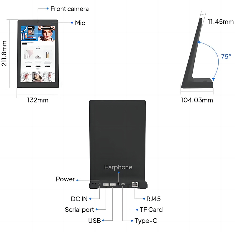The tablet supports essential commercial features such as long term operational stability secure firmware options fast WiFi connectivity and compatibility with cloud based customer experience platforms. For businesses that require branding the device can be customized with housing color system interface adjustments and application level optimization offering OEM and ODM flexibility for project based deployments.