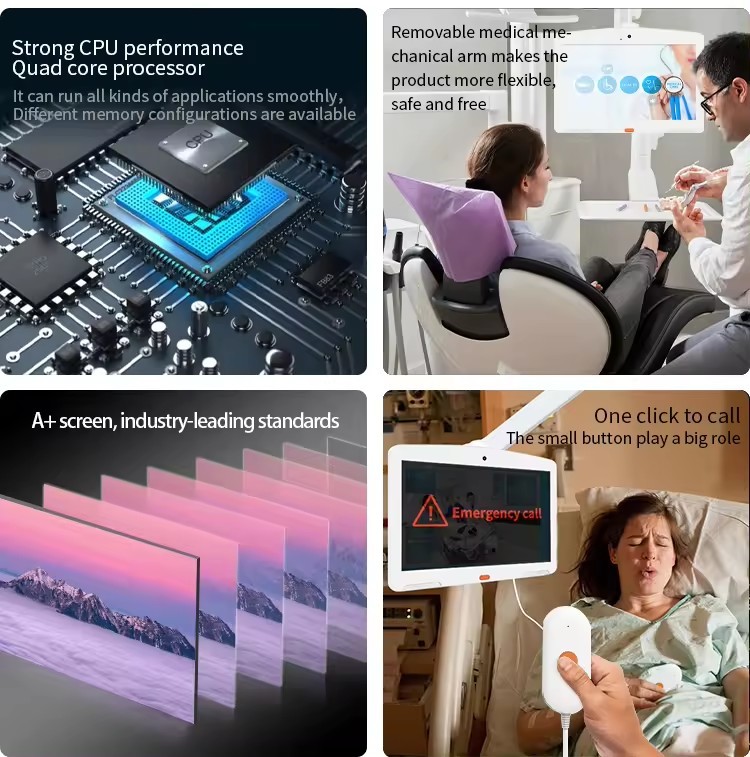 Diese 13,3-Zoll-Tablet verfügt über einen stabilen Prozessor, ein sicheres Android-System,und eine zuverlässige Stromversorgung für den 24-Stunden-BetriebDas schnelle WLAN und der optionale SIM-Kartenspielplatz sorgen dafür, dass das Krankenpflegeranrufsystem und die Krankenhaus-Apps auch in Bereichen mit komplexen Netzwerklayouts verbunden bleiben.Ob Sie Patientenwarnungen senden oder Krankenpflegeranrufe empfangen, die Tablette eine reibungslose Kommunikation ohne Unterbrechung gewährleistet.